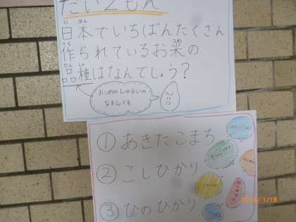 給食委員会からクイズが出されています。「お米」に関するクイズです。