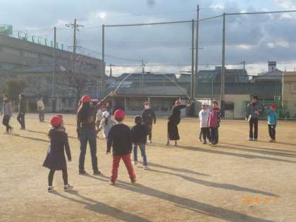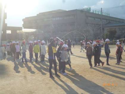 今日の児童集会では、なかよし班で長縄跳びをしました。