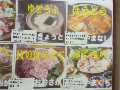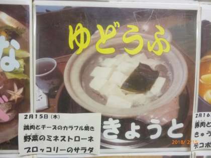 今月の献立です。今日は、湯豆腐ではありません。