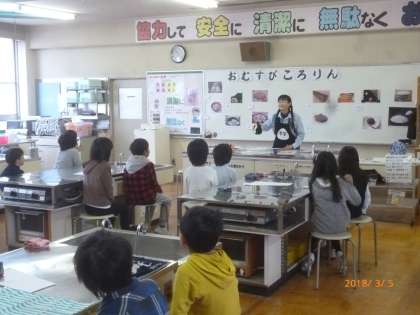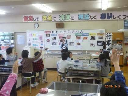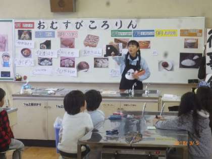3年生の「おむすびころりん」の授業の様子です。今年度最後の食の指導です。