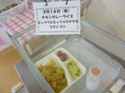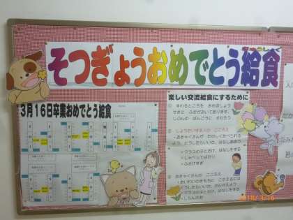 小学校生活最後の給食となりました。6年生が、みんなと一緒に給食をいただきました。