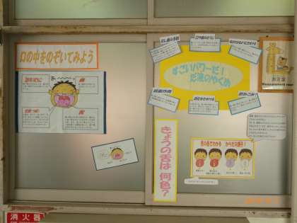 保健室周りの掲示です。今日は低学年の体重測定があり、歯を大切にするお話しもあったということです。はや6月です。