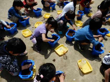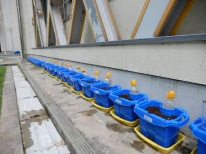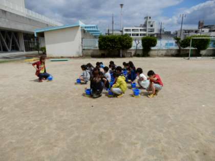 1年は生活科の学習でアサガオの種を植木鉢にまきました。