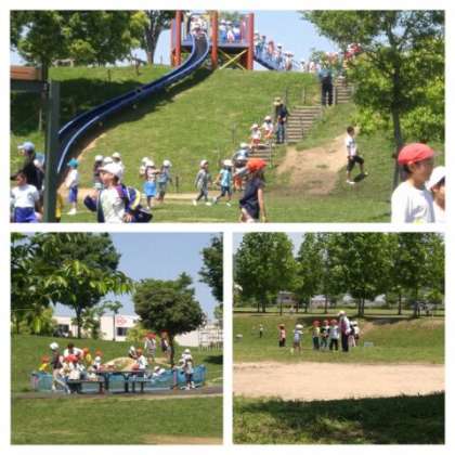 天候にも恵まれ、いろいろな遊具や広場で友だちと途中でお弁当とおやつタイムを挟んで、思いっきり遊びました。