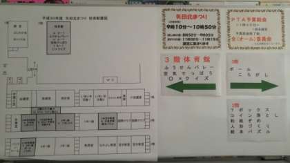 2階の各教室では、2年、地域女性部、PTA、赤おに作業所、生涯学習のお店があります。