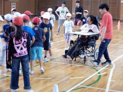障がいのある方と一緒にサッカーをして交流できるようにするためのルールづくりや関わり方を工夫しながら実際にサッカーをして交流しました。