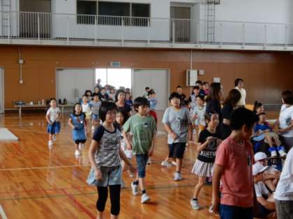 教室を施錠して安全が確保されるまで静かに待った後、全員体育館に集まって無事を確認しました。