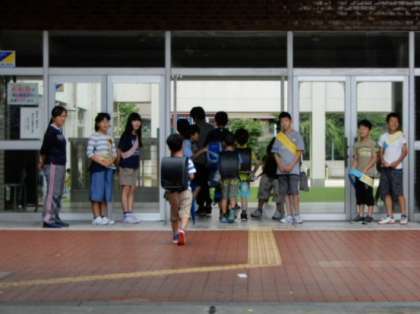 登校してきた子どもたちも、元気にあいさつを返しています。