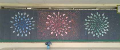 7月は4年生の作品です。夜空に3発の大きな花火が打ち上がりました。