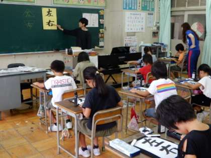 7月6日(金)4年は習字で「左右」の字を学習しました。