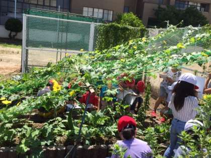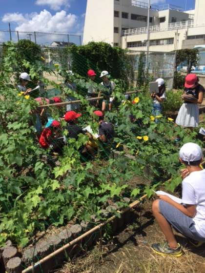 7月10日(火)4年生は学習園で育てているへちまの成長を観察しました。