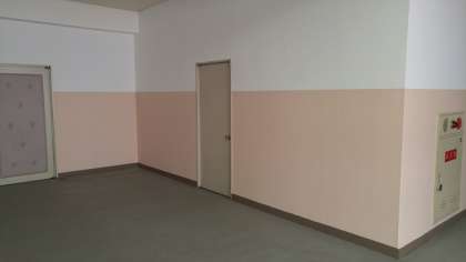 管理作業員により、講堂入口周辺の壁を塗り替えました。