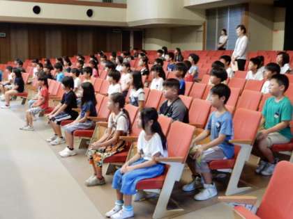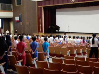 全員で校歌を歌ったあと、学校長から「プール開放などに進んで参加して、夏休み中も規則正しい生活をしよう」「命を大切にしよう」という話がありました。