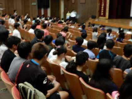 その後、平和登校日実行委員による「平和へ」の朗読と「しんちゃんのさんりんしゃ」のビデオを視聴して今年の平和集会を閉じました。