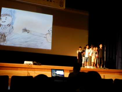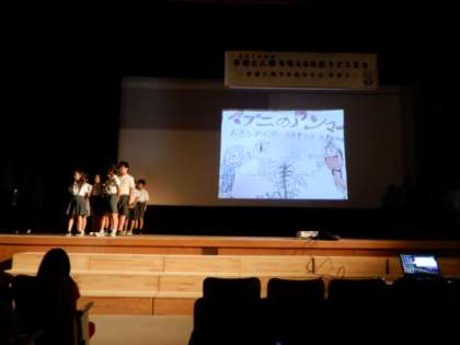 最初にスライド劇「マブニのアンマー(おきなわの母)」を各校持ち回りで朗読しました。