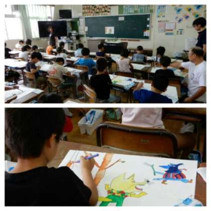 2年は、絵具を上手に使ってお話を絵に表しています。