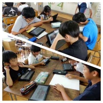 5年は、理科「ヒトのたんじょう」の学習をタブレット端末を使って資料を集め、新聞にまとめる活動をしています。