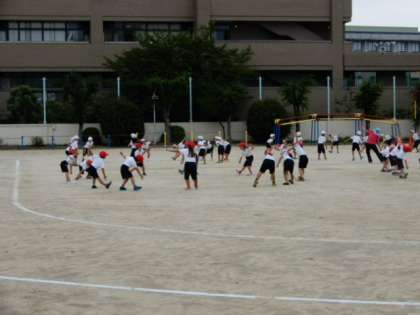 9月13日(木)の児童集会は、運動会の午後1番にする「みんなの体操」を練習しました。ステップを踏みながら体をほぐすオリジナル体操です。