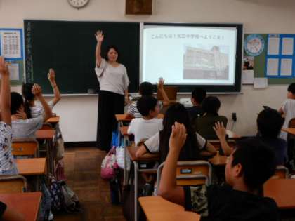 9月14日(金)6年は、矢田中学校へ進学する矢田東小学校の6年と一緒に授業体験・クラブ体験のため、矢田中学校へ行きました。