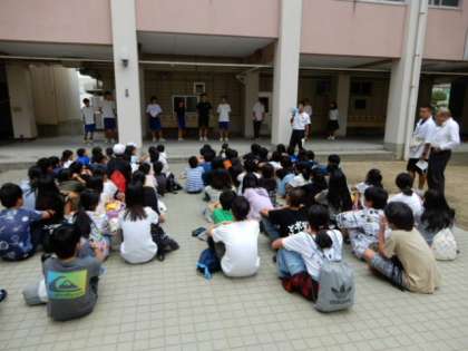 その後、再度中庭に集合してから各クラブの部長さんの誘導でクラブの体験活動のために解散しました。