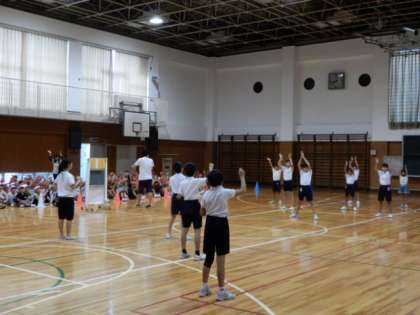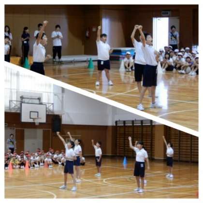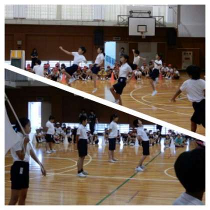 9月20日(木)の児童集会の時間に運動会の応援合戦の練習を体育館で行いました。