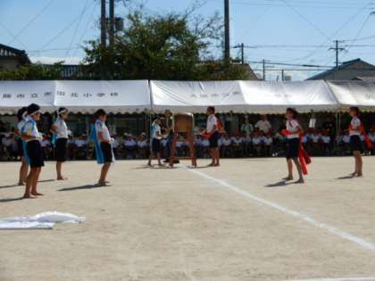 それに合わせて全校児童が手拍子をしたり、ウェーブをしたりして応援を盛り上げていました。