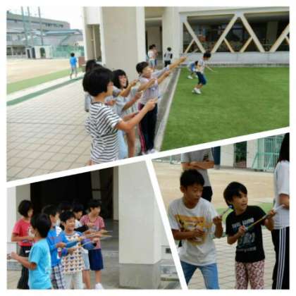 空気でっぽうを使って押し縮められた空気の力で玉が勢いよく飛び出ることを何度も確かめていました。