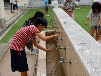 また、その後で筒に水を入れて同じように実験をしたらどうらなるかも確かめていました。