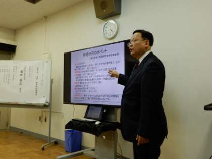 授業研究後は、大阪総合保育大学の藤田善正先生に来ていただき、1年の授業の講評のみならず、他の学年の資料についても指導のねらいなどについて詳しく講話していただきました。