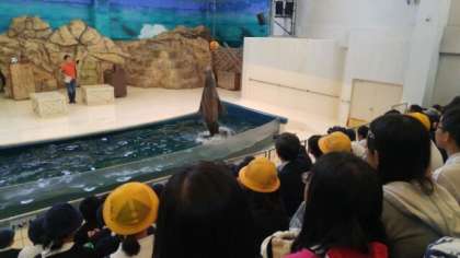 生きもん発見教室のあとは、グループに分かれてアシカショーを見たり、見学をしたり、お土産を探したりしています。