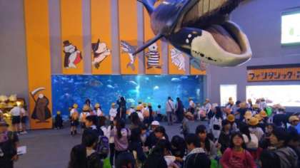 予定通り11時20分に水族館のエントランスホールに集合したあと、たくさんのお土産を手に昼食のため、宿舎に戻りました。