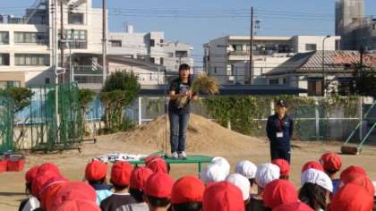 手に持っているのは矢田西小学校の近くの田んぼで収穫した稲穂です。