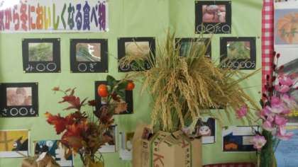10月22日(月)の全校朝会で、栄養教諭から「実りの秋」にちなんだ話がありました。