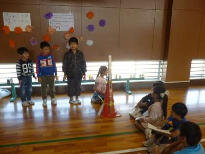 お客さんとして1年生を招待して、2年生がリードしながら楽しく交流できました。