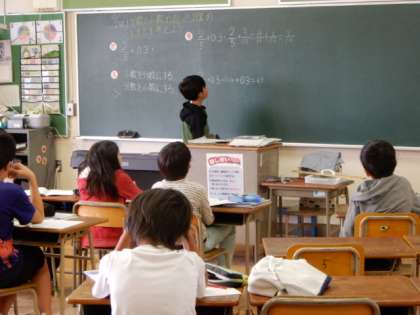 5年は、算数「分数のたし算とひき算」の学習を習熟度別少人数で学習しています。