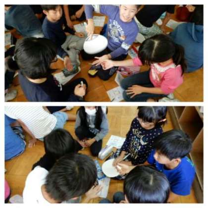 エアコンがどうして冷えるのか、その仕組みを手に水を吹きかけて団扇であおぐことによって気化熱を奪って温度を下げていることを体感しました。