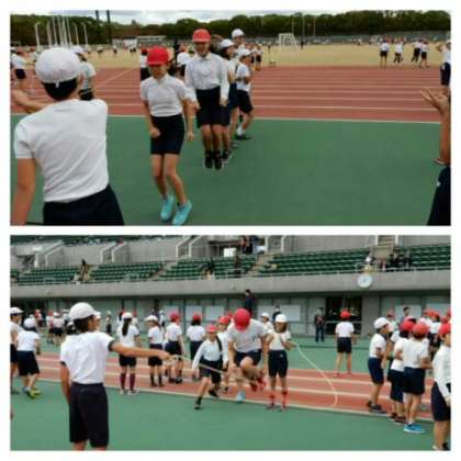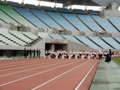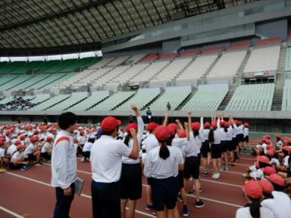 この日は、東住吉区内の10校の6年生が長居陸上競技場に集合しました。