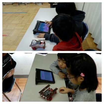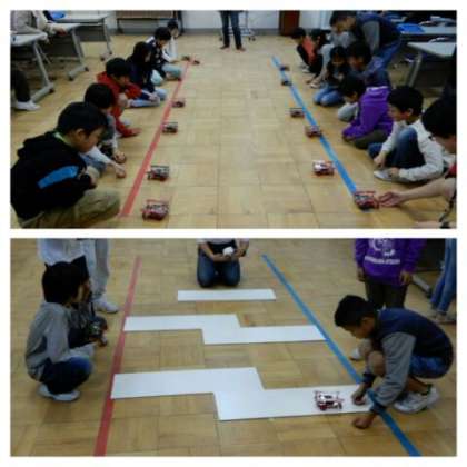11月20日(火)5年と6年は、ロボットカーを自分が考えたプログラムでクランクに作られた板の上を上手に動かす実習をしました。