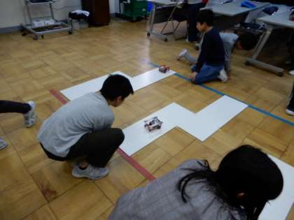 6年生は、さすが最高学年、プログラミングをすぐに理解してロボットカーを思い通りに操作していました。