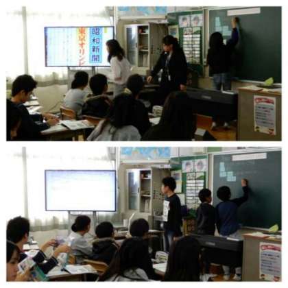子どもたちは、54年前に行われた東京オリンピックについて資料や、家族から当時の様子を聞き取るなど調べたことをもとに、学習を深めました。