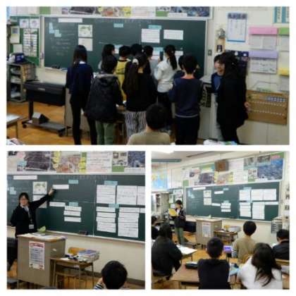 11月27日(火)、矢田北小学校で大阪市の「主体的・対話的で深い学び推進プロジェクト事業」の公開授業を行いました。大阪市内だけでなく、大阪府内の小中学校の先生方が来られて、6年の社会科の授業を参観しました。