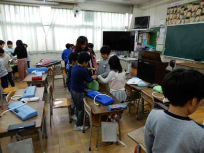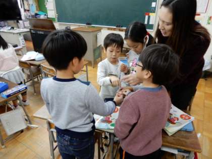 2年は、音楽の時間にわらべ歌の「ずいずいずっころばし」をグループで手遊びをしながら、歌を歌って楽しみました。