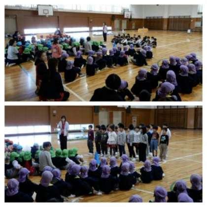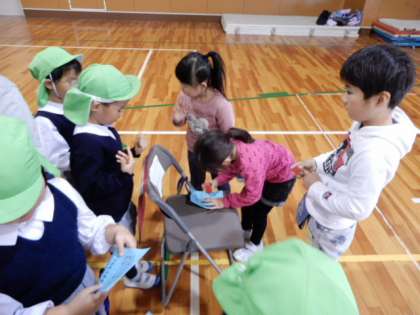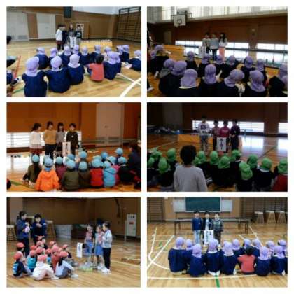 11月30日(金)1年生は、近隣の保育所の人たちを学校に招待して、あきまつりを行いました。