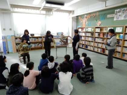 「三匹のやぎのがらがらどん」は、5人が役割を分担して迫力ある読み聞かせでした。