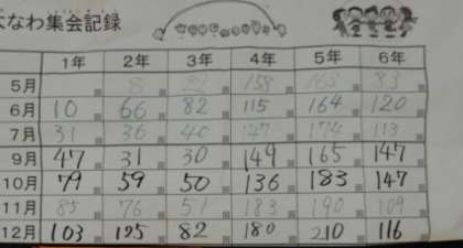 特に1年・2年は100回を超え、5年は200回を超えました。他の学年も今までの最高記録に迫る記録を出してがんばりました。