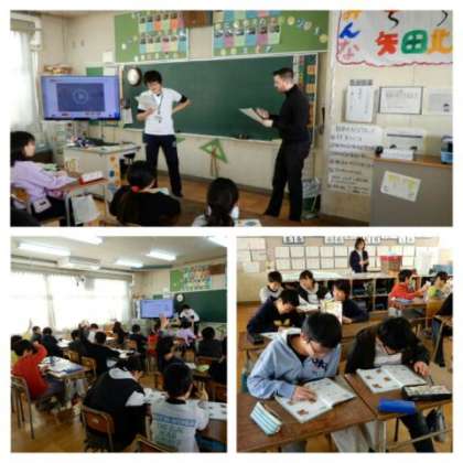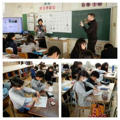 5年も6年もクイズやボンゴゲームを取り入れながら、5年は時間割を題材にして曜日や教科について、6年は好きなことや得意なことについて楽しく学びました。