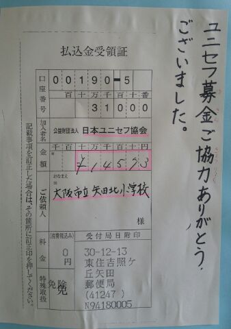 矢田北小学校全児童の気持ちが世界中の子どもたちの幸せのために役立ってほしいです。