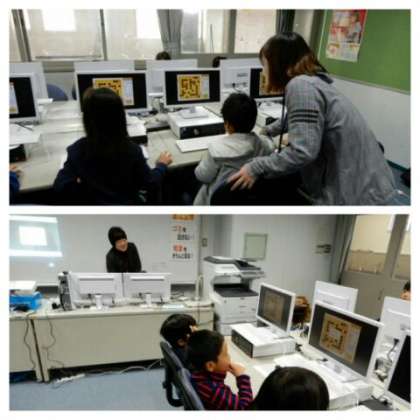 12月19日(水)1年は、パソコン教室でゲームを通してマウスでドラッグしたり、クリックしたりすることを学びました。