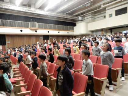 始業式では、全校児童の校歌を歌う声が講堂に広がりました。