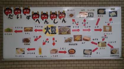 それに合わせて玄関には、節分に食べる大豆の栄養価についての掲示をしています。